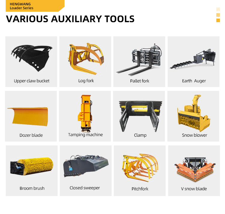 Modern loaders are usually equipped with quickly replaceable working devices such as buckets, forks, grabs, etc. to adapt to different operating needs.