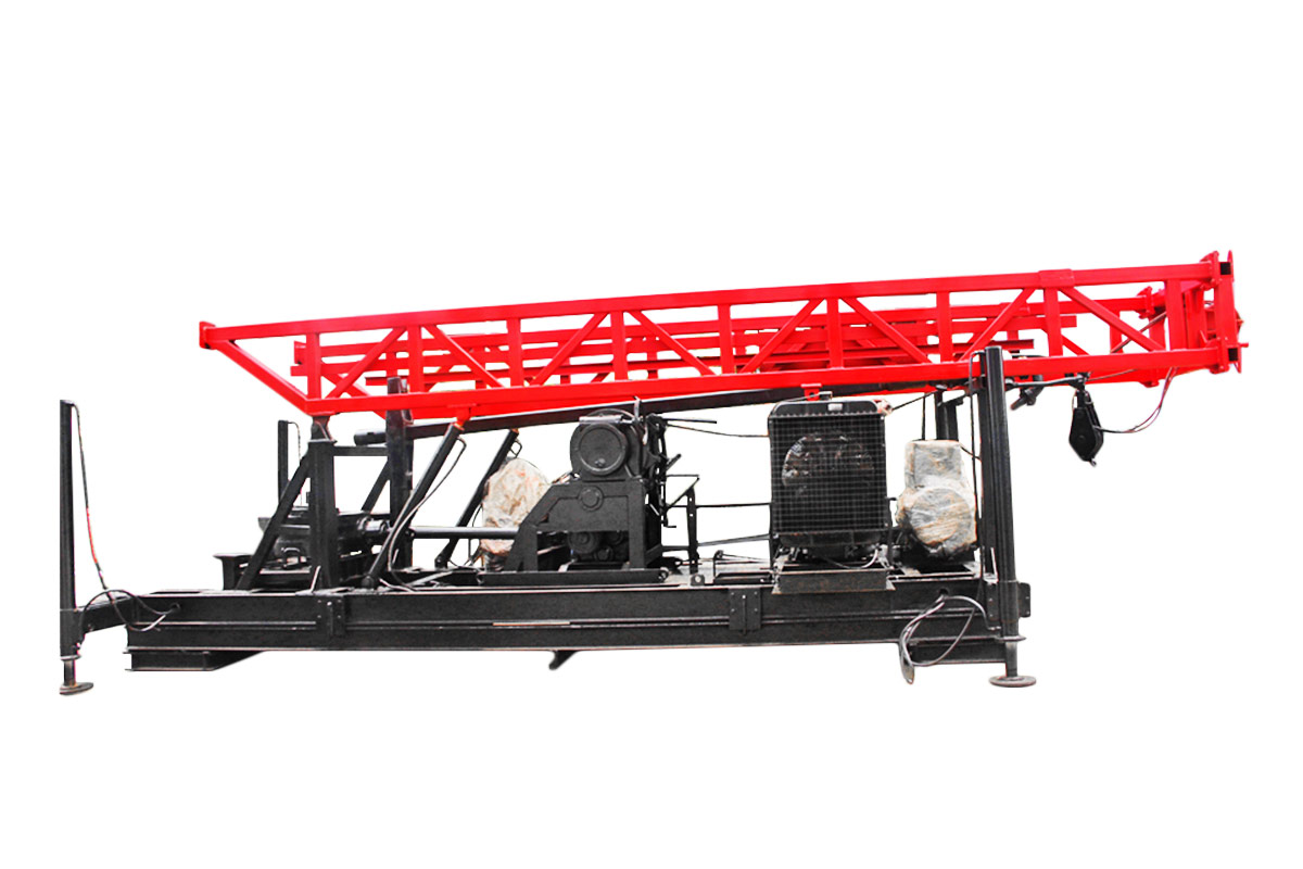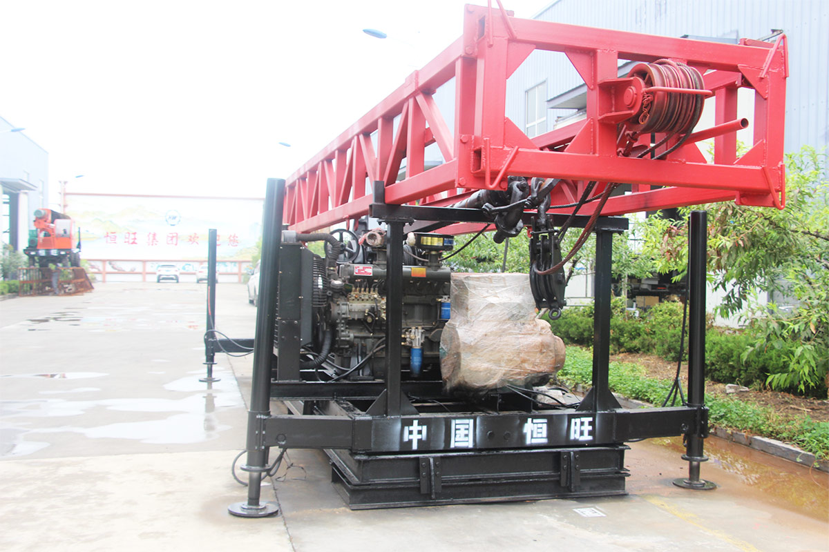 4. When the rig is working, use the mud rinsing liquid (positive circulation), and the turntable rotates to drive the drilling tool to rotate. The hoisting system is used to realize decompression drilling, lifting and drilling tools, down hole pipes, impact sampling, and vertical rigs.