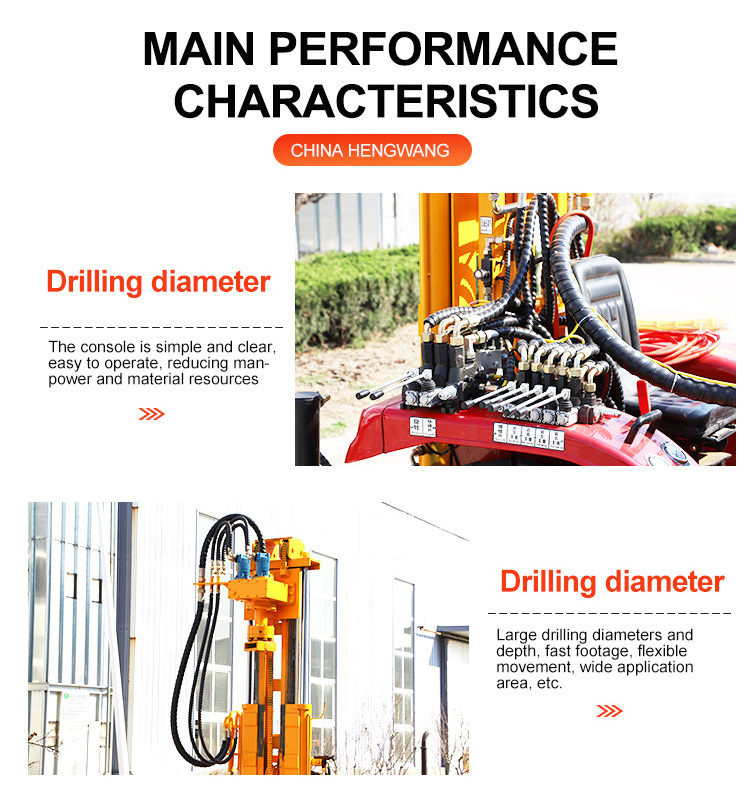 Heng wang water borehole drillling is an integrated drilling equipment that combines a tractor and a pneumatic water well drilling rig. It is easy to walk and is combined with an air compressor.