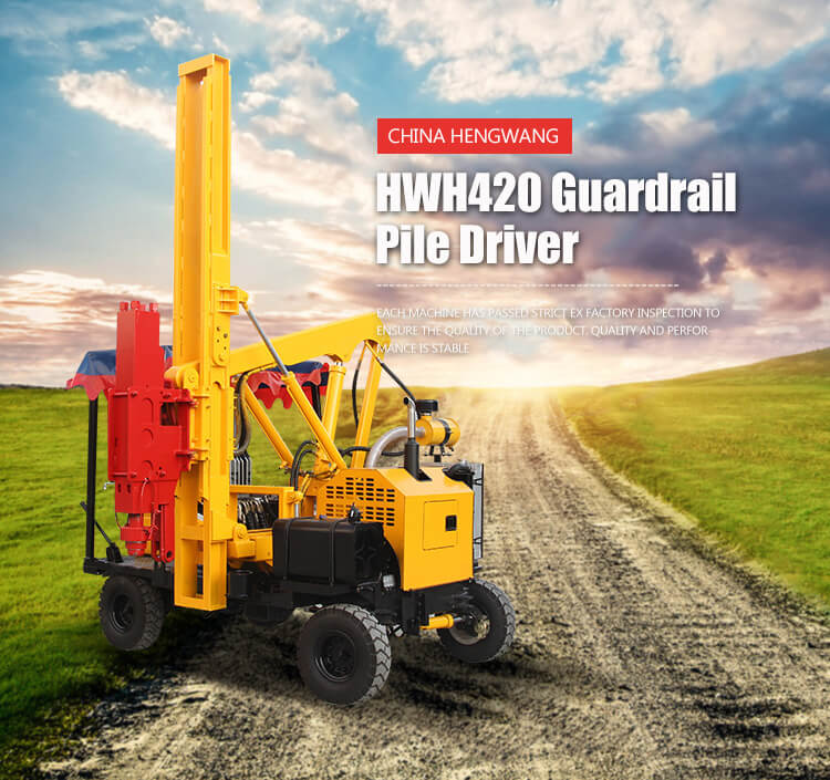 The guardrail piling machine produced by Shandong Hengwang Group adopts 85 hammer head, strong power, mainly used for drilling, piling, and piling of highway guardrails; Piling in various other fields (such as farms, ranches, orchards, etc.) and Highway field engineering construction.