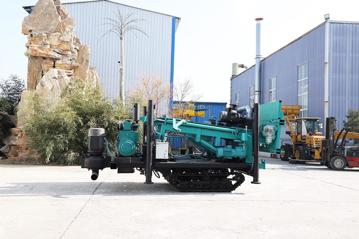 1. The rig adopts engineering crawler, hydraulic walking chassis, easy to move, more suitable for plain, plateau, hilly and other land forms. The chassis has four legs, and the drilling machine has small vibration and good stability during drilling.