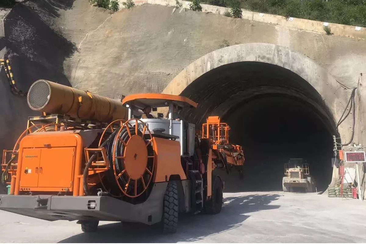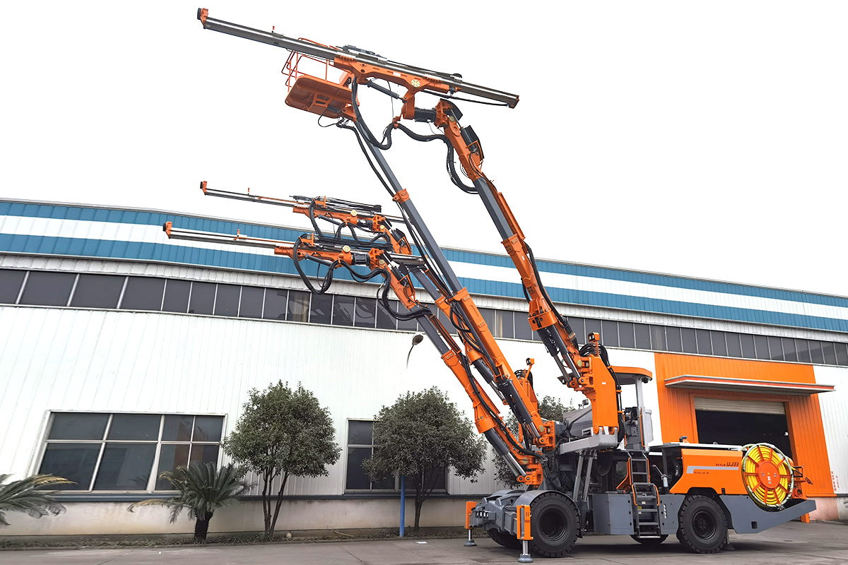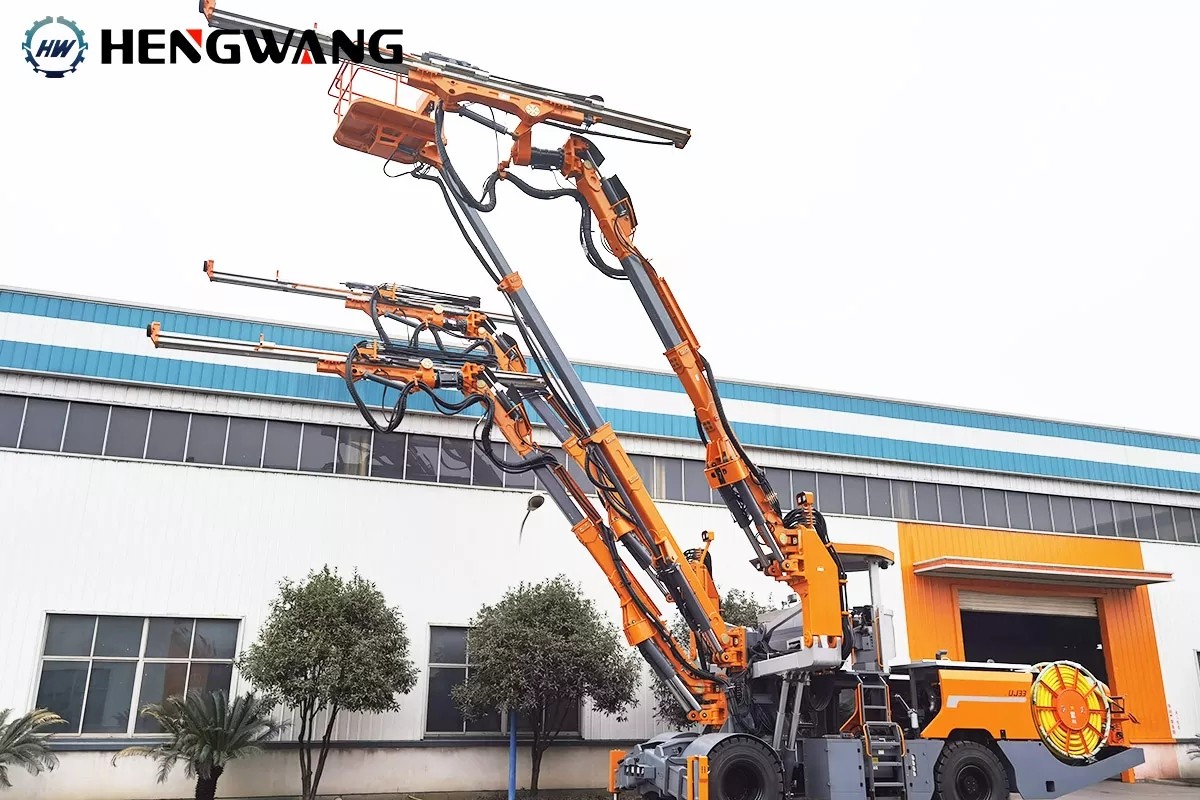 HW-UJ33 underground drilling jumbo used for highway, railway, hydropower and other medium-sized tunnel excavation, anchor construction, and equipped with heavy drilling booms and a service platform, all-round high standard configuration to meet the different needs of customers.