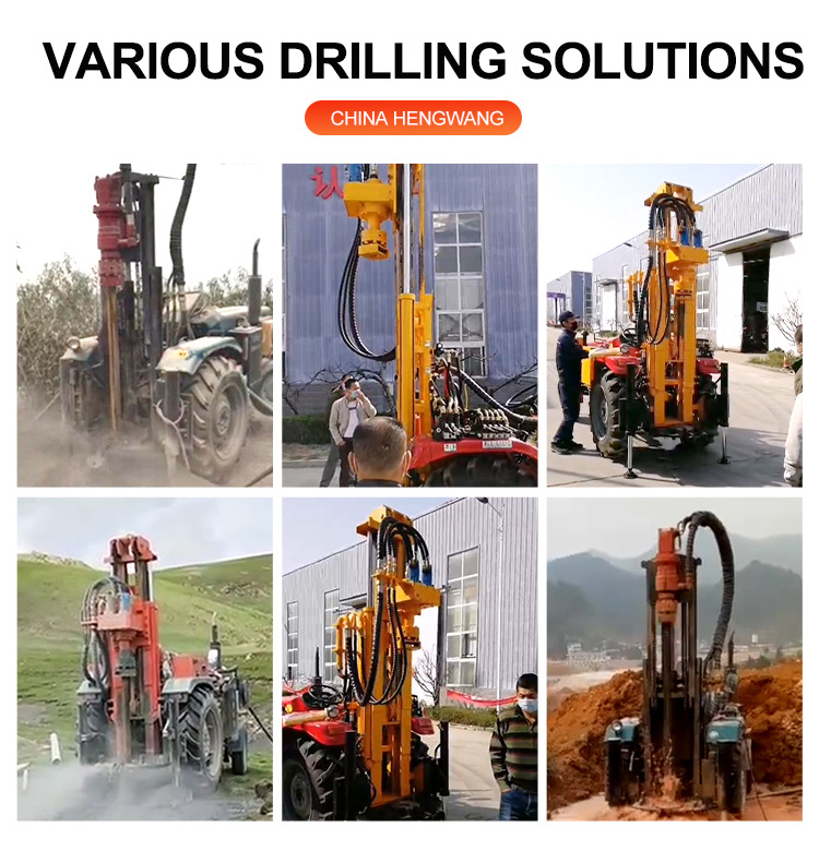 Heng wang water borehole drillling is an integrated drilling equipment that combines a tractor and a pneumatic water well drilling rig. It is easy to walk and is combined with an air compressor.